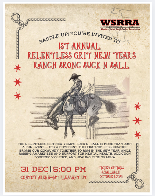 The Relentless Grit New Year’s Buck N’ Ball is more than just a fun event — it’s a movement. This first-time celebration brings our community together to ring in the new year while raising awareness and support for mental health, addiction, domestic violence, and healing from trauma.